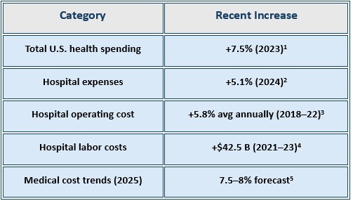The healthcare industry is under mounting pressure to reduce costs while improving the quality of patient care. Across the board, healthcare operational costs are rising significantly faster than general inflation, stressing budgets across hospitals, medical practices, insurers, and patients alike.