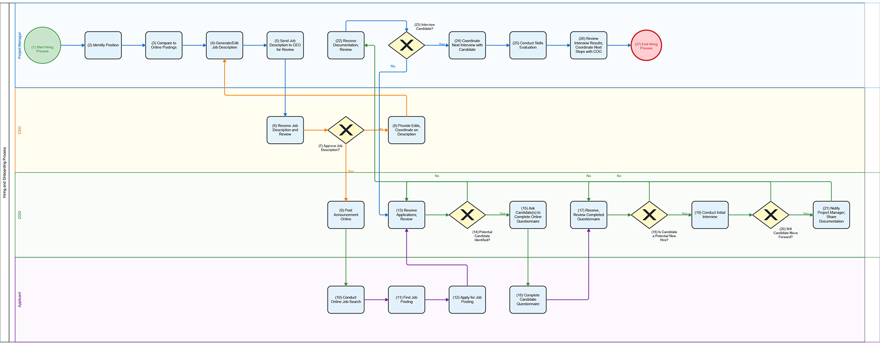 Map personnel functions such as onboarding tasks, and vacation inquiries to create accurates systems that reduce administrative workload and staff frustration.